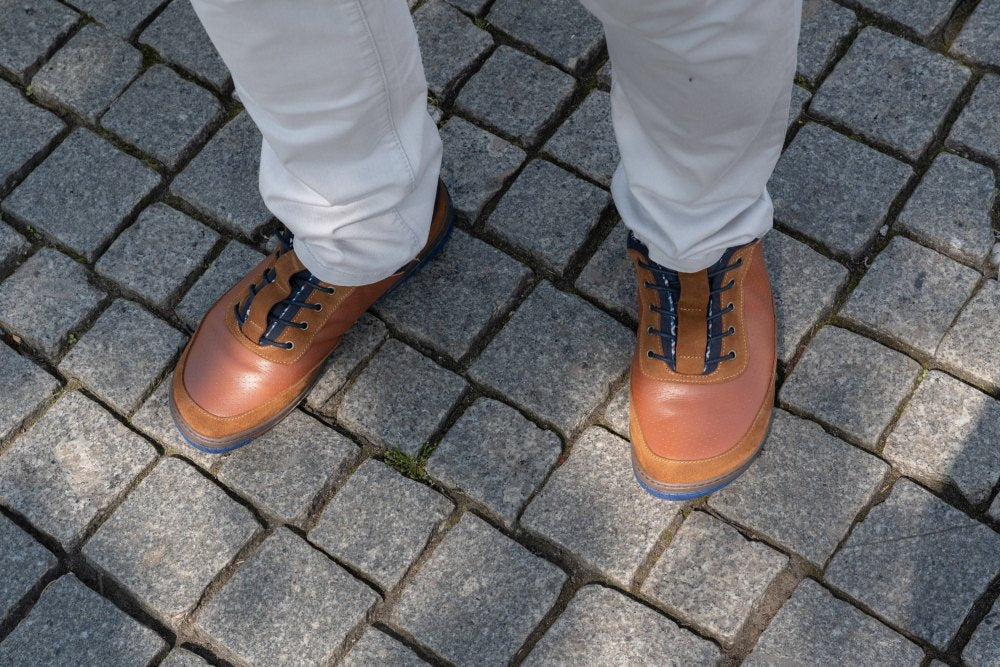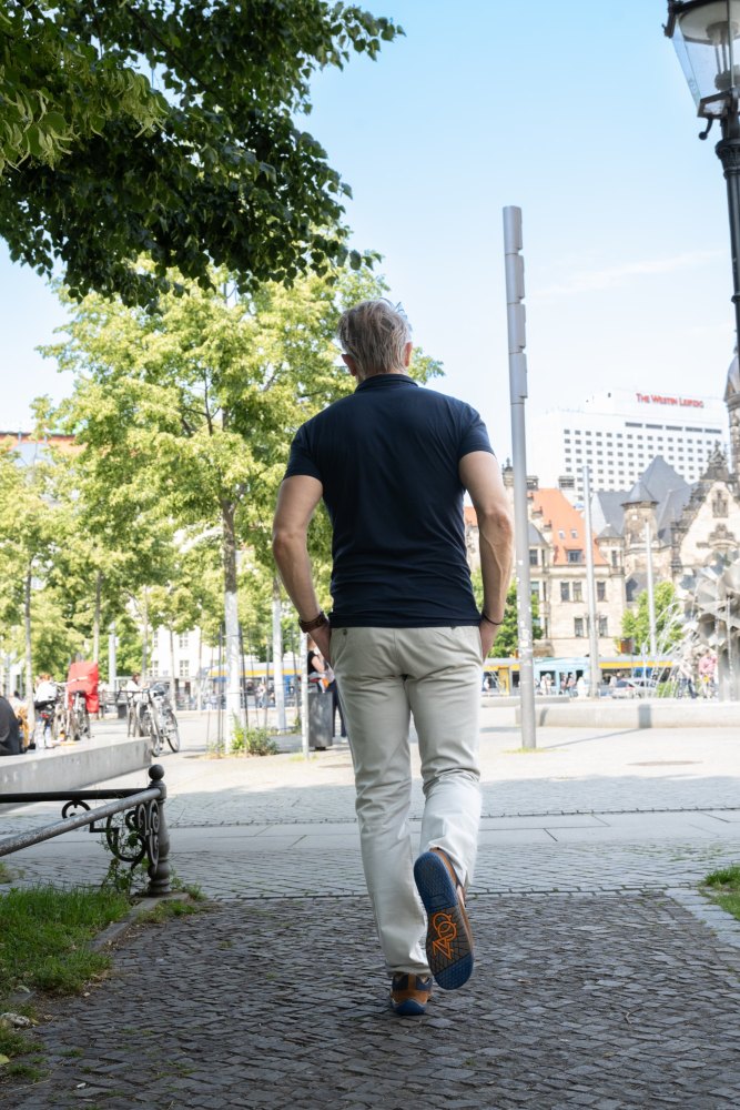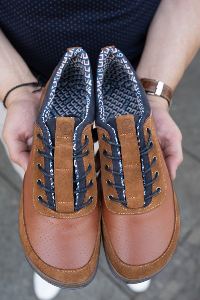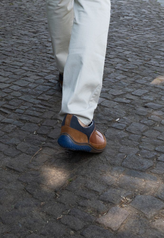 W przypadku AQIV używamy różnych materiałów, aby wytworzyć ładny wygląd z jednej strony i osiągnąć najlepszą możliwą funkcjonalność z drugiej. Miękka, perforowana skóra nappa z przodu zapewnia wysoką aktywność oddechową i jest szczególnie elastyczna i przytulna. Jako posiłki podłożyliśmy boso boso z solidnym zamszem na brąz. Używamy również skóry welurskiej przy wejściu, aby mieć dobrą stabilność w tym obszarze. Miękka wyściółka zapewnia, że wałek cudownie przytula stopę.
