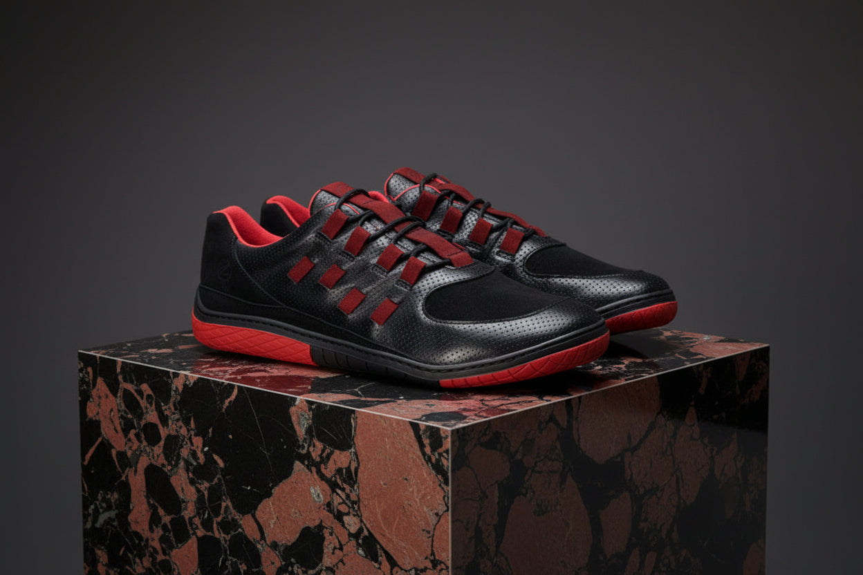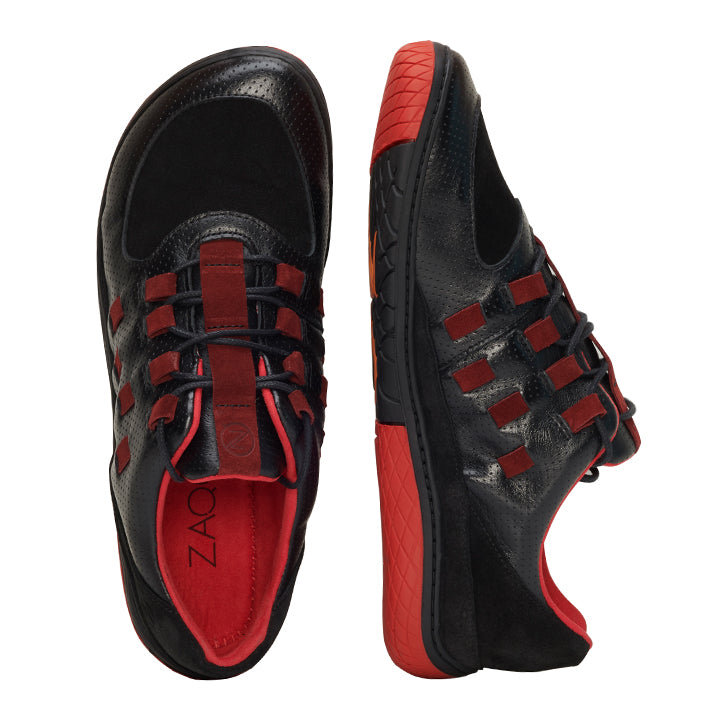 Koncepcja czarnego i czerwonego koloru przebiega do podeszwy, a zatem idealnie pasuje do inteligentnego wyglądu boso. Ale nie tylko projekt naszych nowych ZAQQ Minimalna jedyna entuzjastyczna, uczucie biegania również cię rozwiedzi! Daje ci to nieporównywalne uczucie boso.