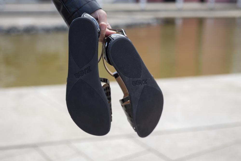 - Gumowa podeszwa z zerową piętą, w ten sposób zmniejszając kręgosłup i chroniąc stawy, wspiera naturalną postawę