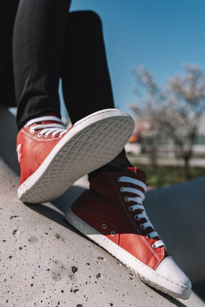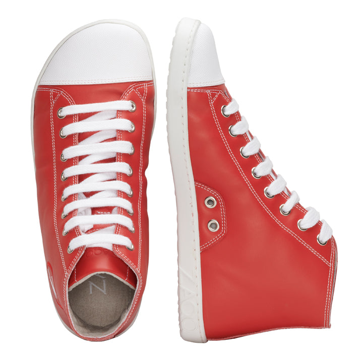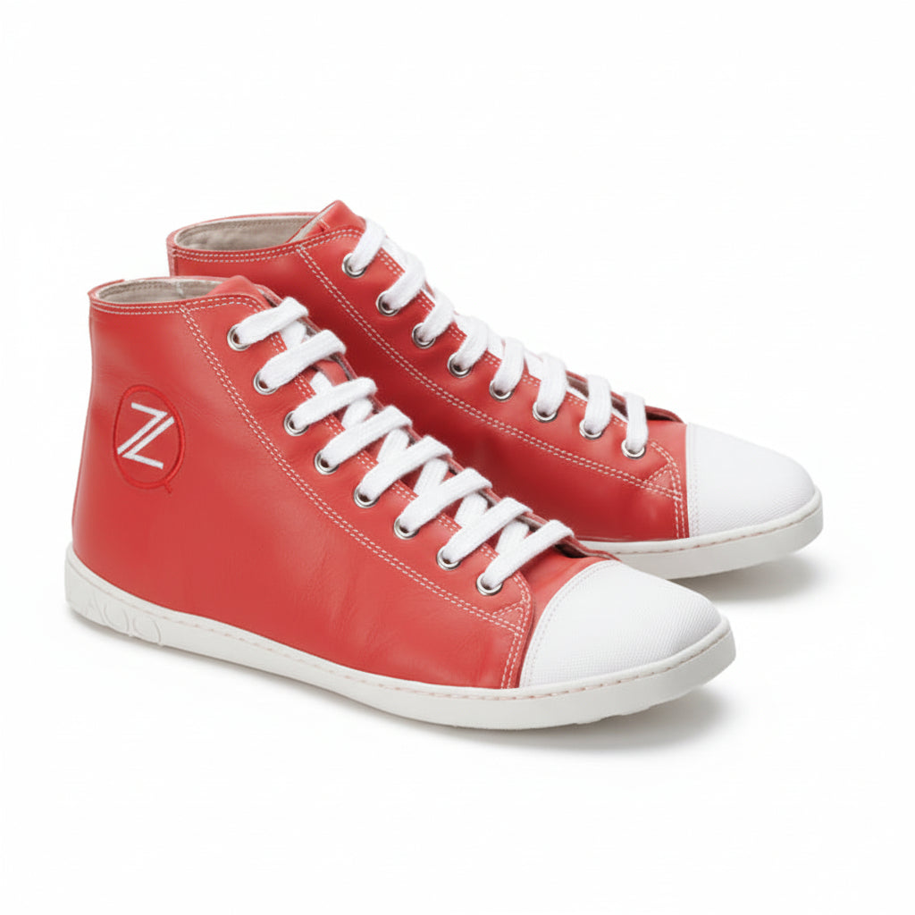 Czerwony Chuqqs został wykonany ze skóry czerwonej Nappa i wyposażony w typową białą czapkę. Białe koronki i nasze ZAQQ Logo zaokrąglą sportowy projekt. Dzięki temu półprzewodnikowi nie tylko jesteś absolutnie wygodny, ale także zwróć na siebie oczy.