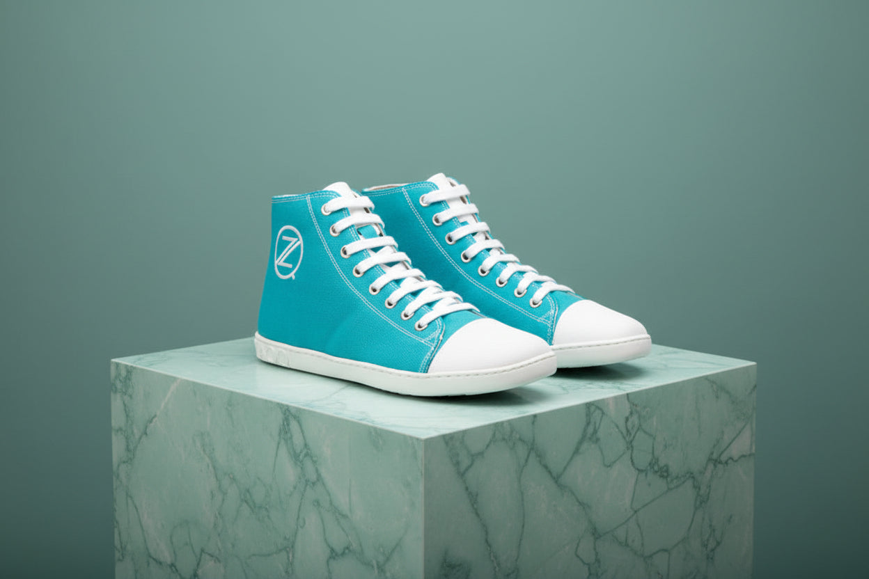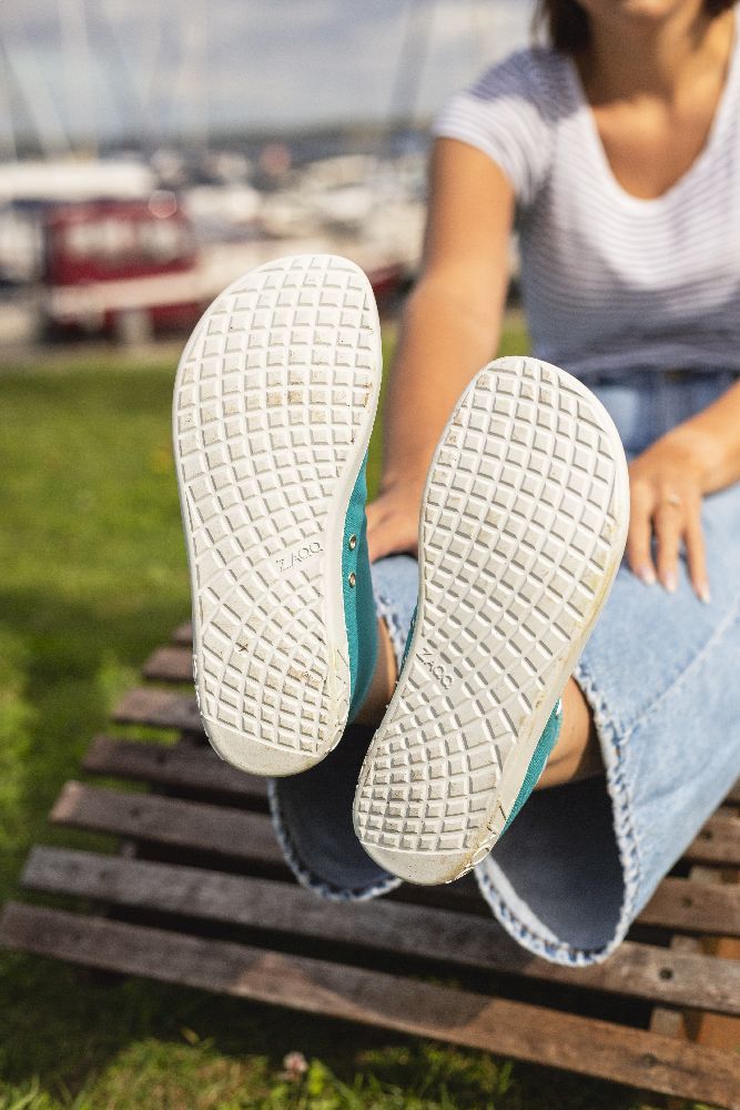 Wykonany z turkusowego niebieskiego dżinsu, oferujesz nie tylko świeży, uderzający design, ale także wszystkie zalety boso. Z białą czapką i białymi sznurowadłami wyglądają sportowo, a jednocześnie nowocześnie.