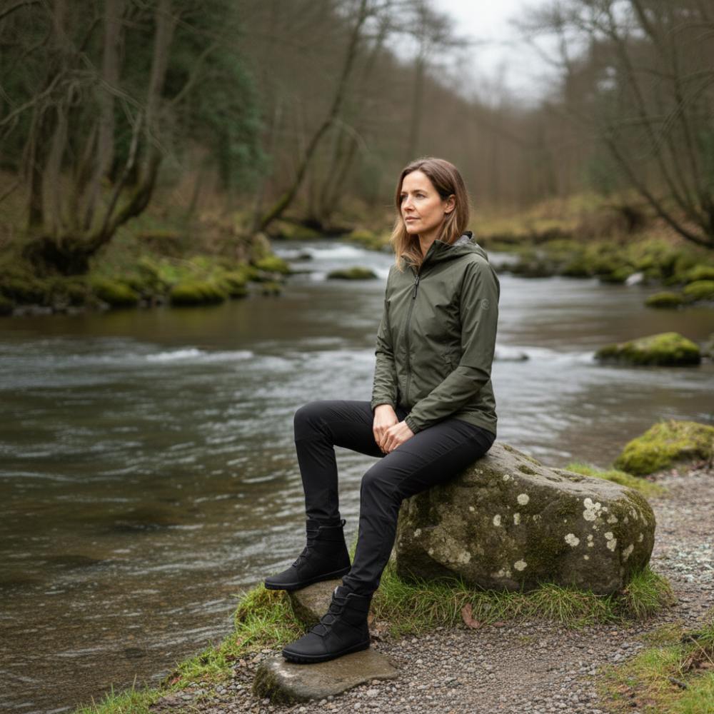 Gumowa podeszwa zewnętrzna z zerową piętą, w ten sposób zmniejszając kręgosłup i chroniąc stawy, wspiera naturalną postawę