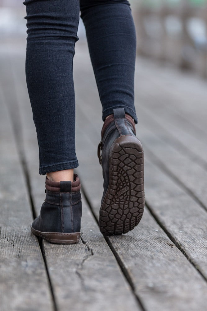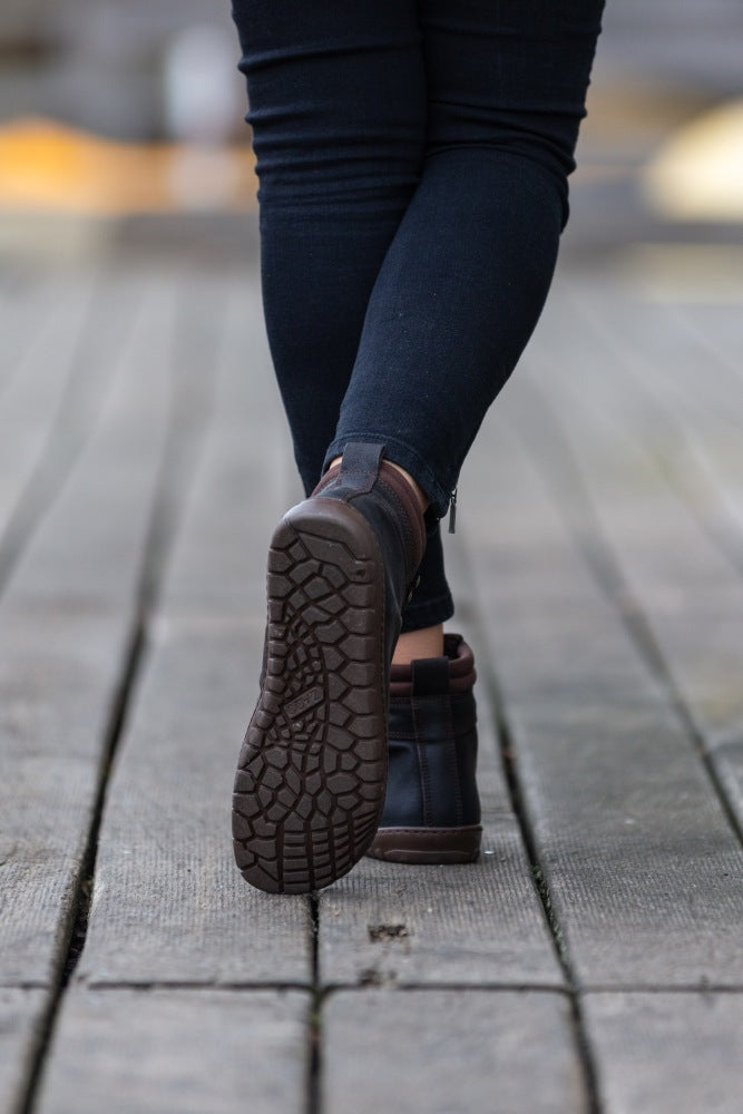Gumowa podeszwa zewnętrzna z zerową piętą, w ten sposób zmniejszając kręgosłup i chroniąc stawy, wspiera naturalną postawę