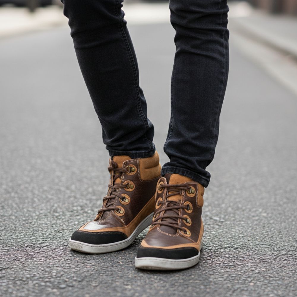Połączenie ciemnobrązowej i jasnej terakoty po prostu idealnie pasuje do siebie. Ponadto rejestrowanie czarnej skóry w obszarze palców palców i pięty to kolejny element projektowy, który chroni także bose but w szczególnie wrażliwych obszarach.