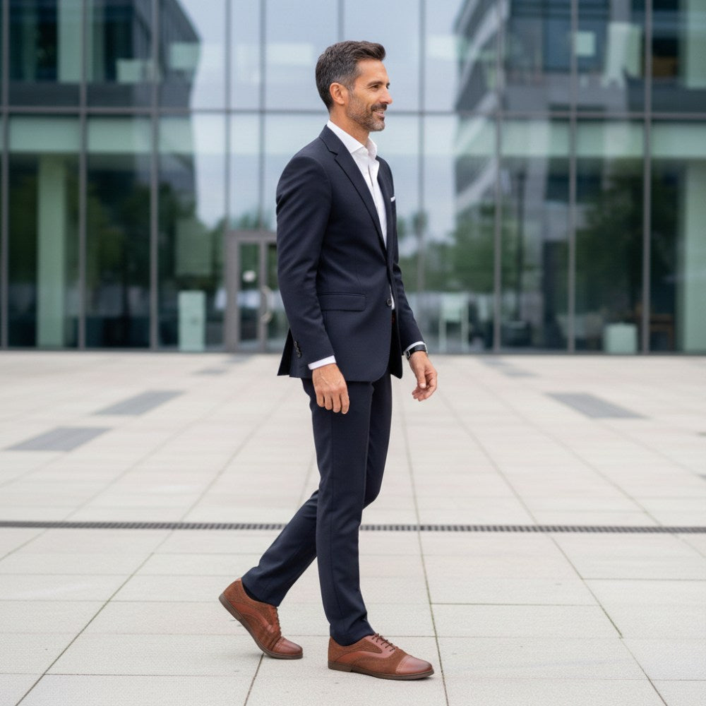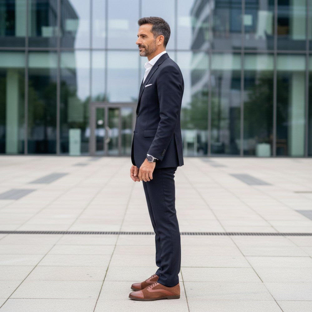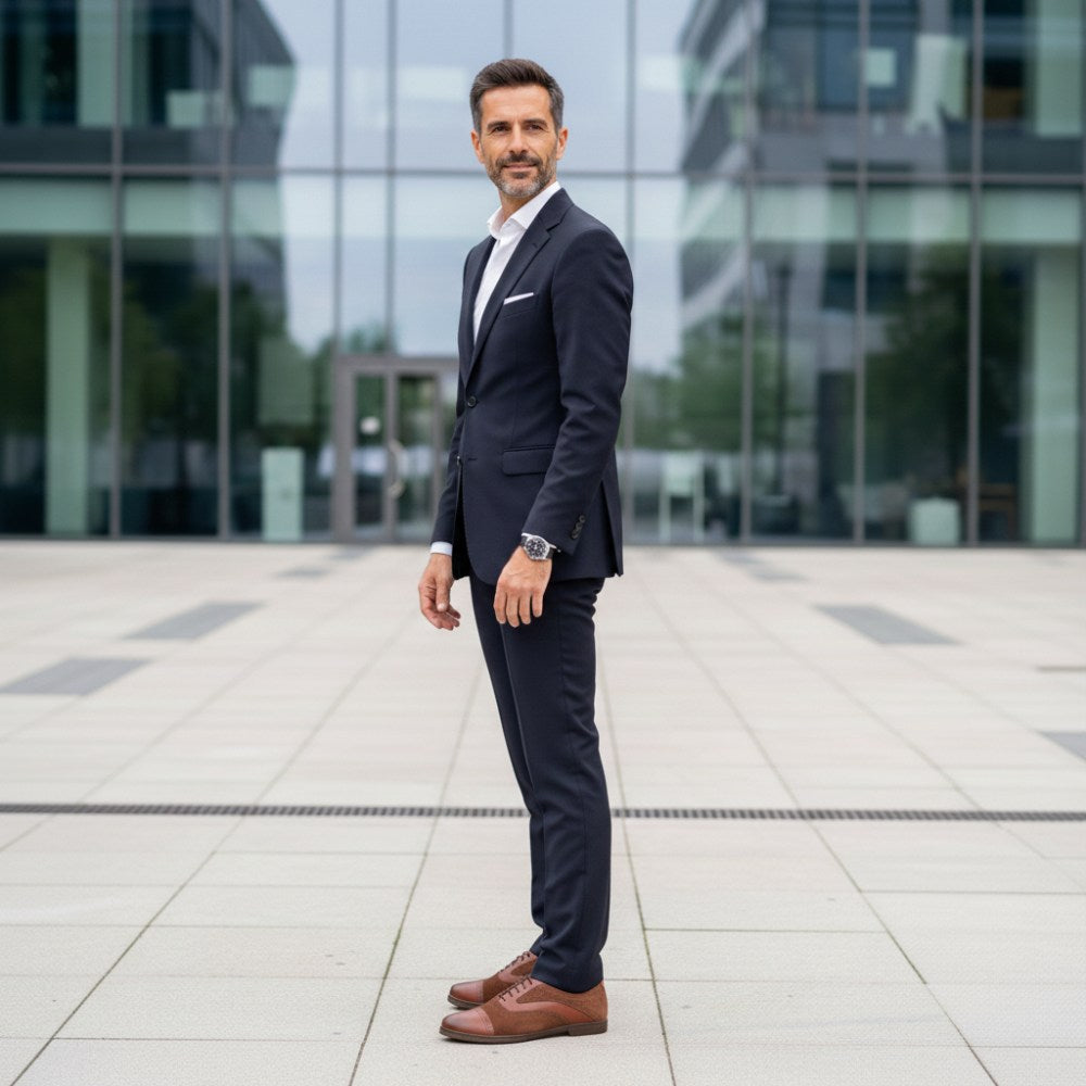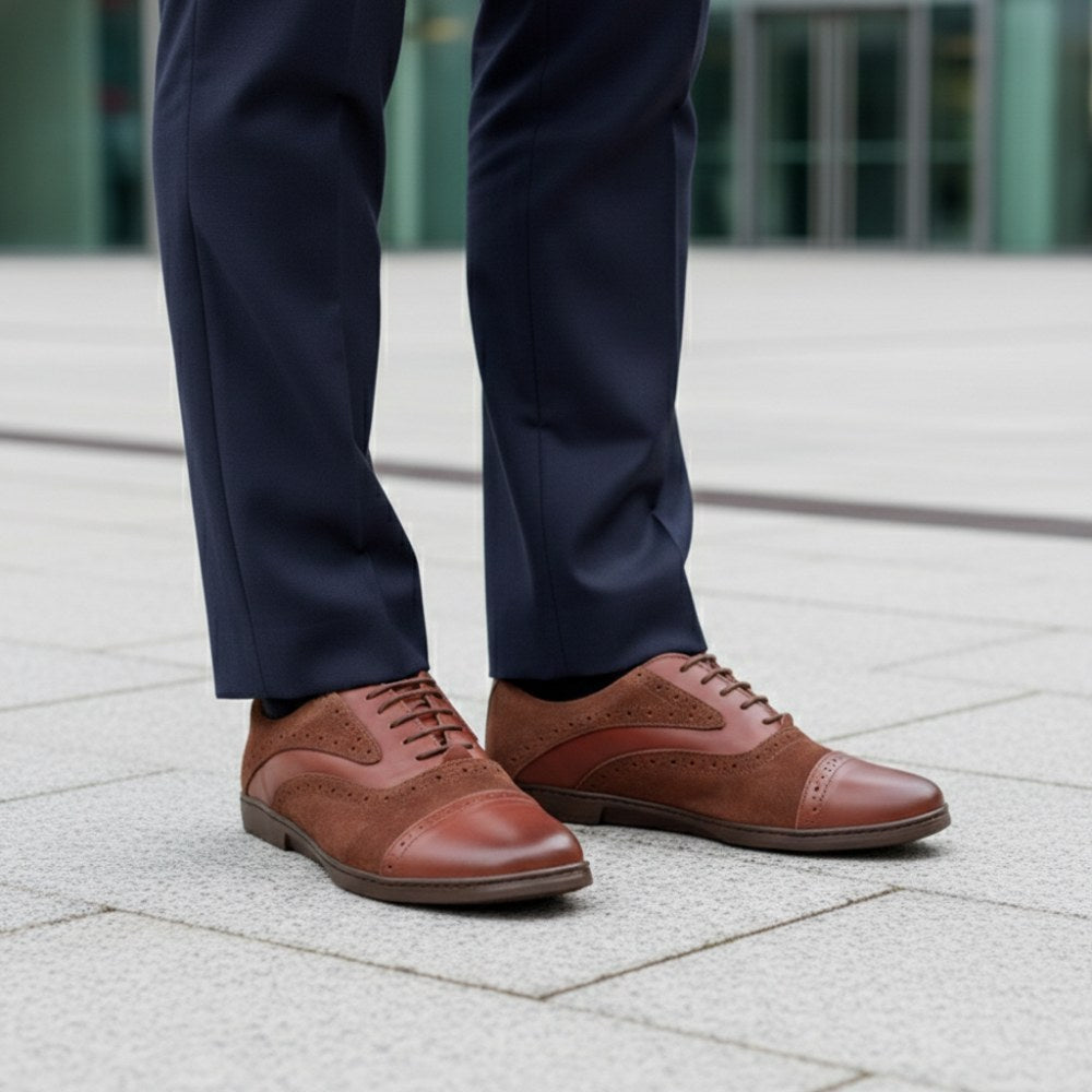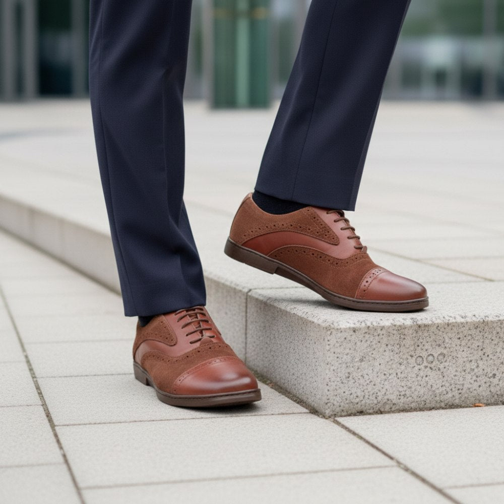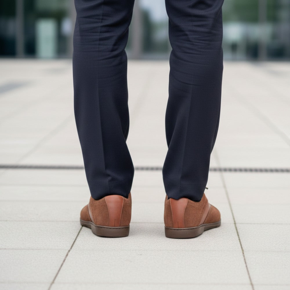Z ciepłym brązowym tonem ten boso boso po prostu wygląda stylowo i idealnie pasuje do spodni garnituru. W przypadku Qentle używamy wysokiej jakości skóry Nappa w połączeniu z zamszem premium. Wzdłuż szwów zmodernizowaliśmy but o drobne broge i podkreślaliśmy linie buta boso, aby go wizualnie rozciągnąć.
