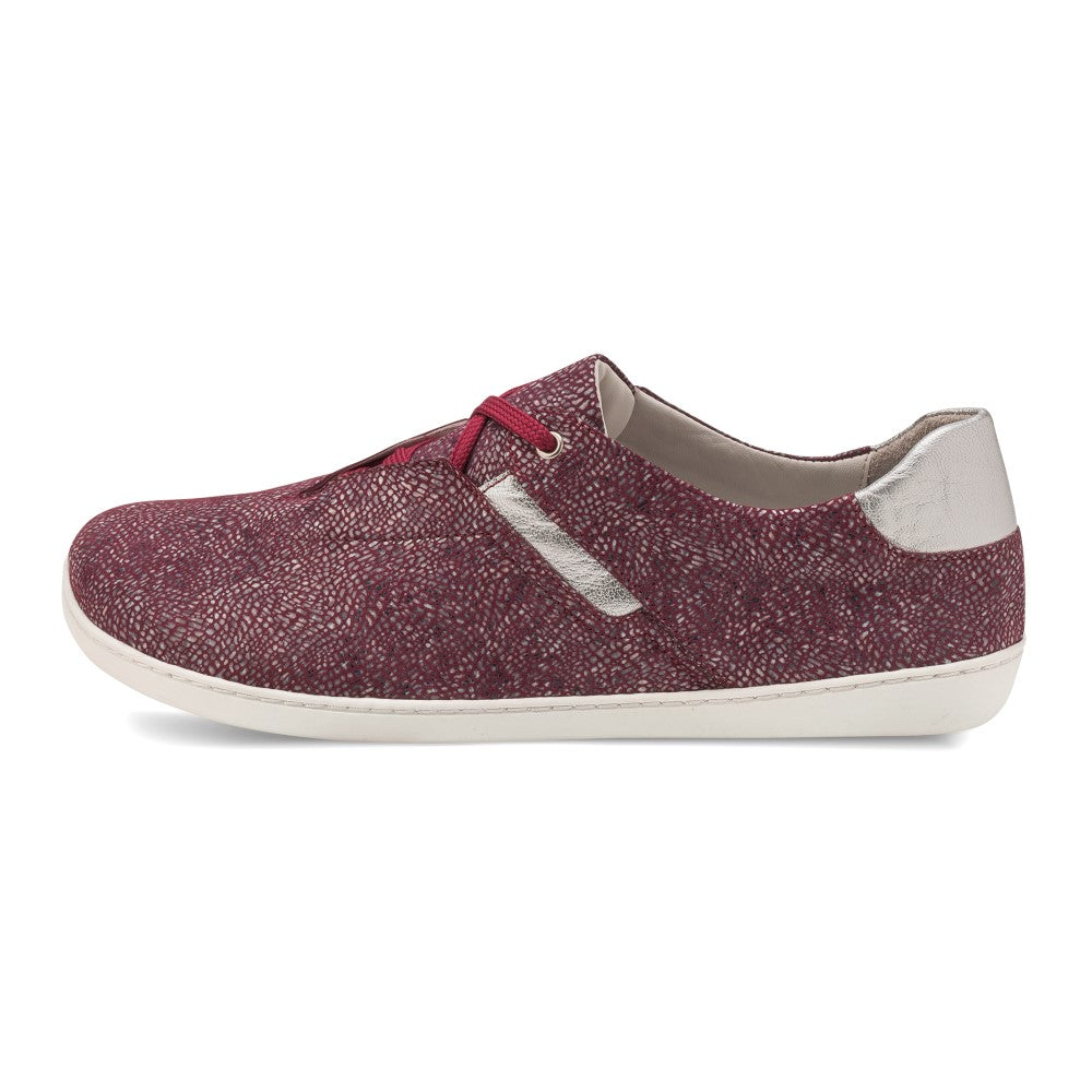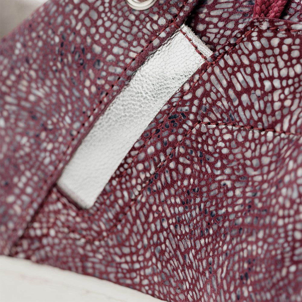Ale oprócz komfortu bólu boso, ten tenisówka imponuje również wizualnie swoim oryginalnym projektem. Rodzaj struktury sieci wykonanej ze skóry Nappa nadaje temu butowi magiczny wygląd. A także koktajl w sznurowaniu, czerwone koronki i srebrne detale z przodu i na pięcie, sprawiają, że ten tenisówka jest kobiecym, futurystycznym modelem.