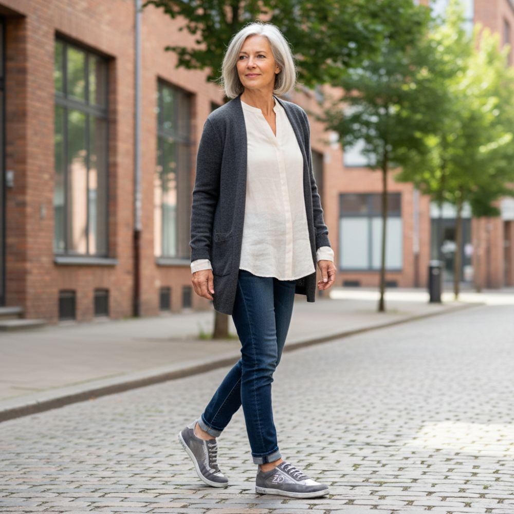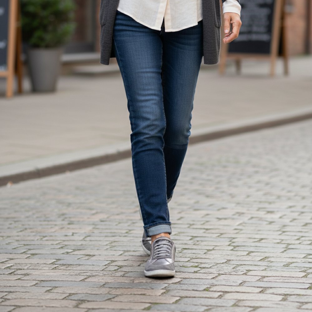 Szary zamsz łączy się ze srebrną gładką skórę w idealną harmonię. Ton w dźwięku w subtelnym szarym sreatku możesz po prostu połączyć ten boso boso do wszystkich kolorów. Czasami klasyczny dla długich spodni, czasami bezczelny dla chudych dżinsów, z OQTAV, który znalazłeś swojego super wygodnego towarzysza, który zawsze prezentuje cię z najlepszej strony.