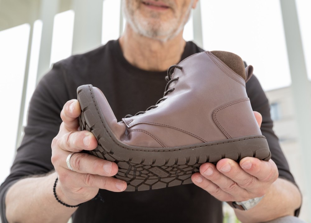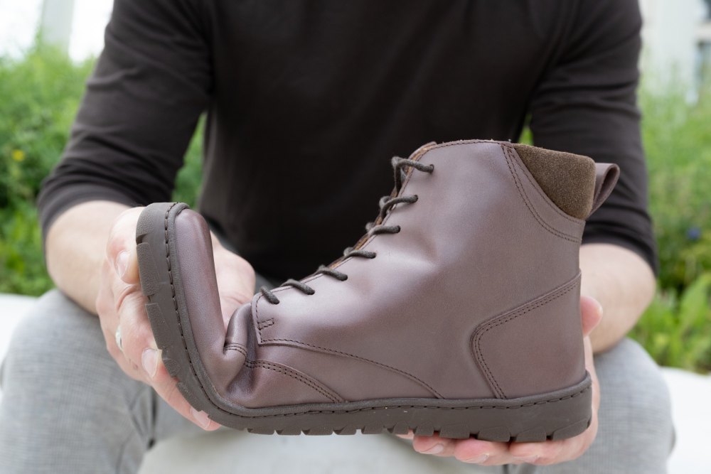 Gumowa podeszwa z zerową piętą, w ten sposób zmniejszając kręgosłup i chroniąc stawy, wspiera naturalną postawę
