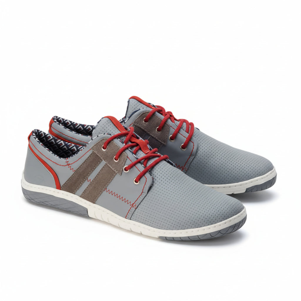 Qapetown Gray jest zarezerwowany z szarym, ale absolutnie interesujący z ognistymi czerwonymi akcentami. Ten sportowy, elegancki trampnik inspiruje swoim nowoczesnym designem i psuje cię tym ZAQQ Typowe uczucie boso.