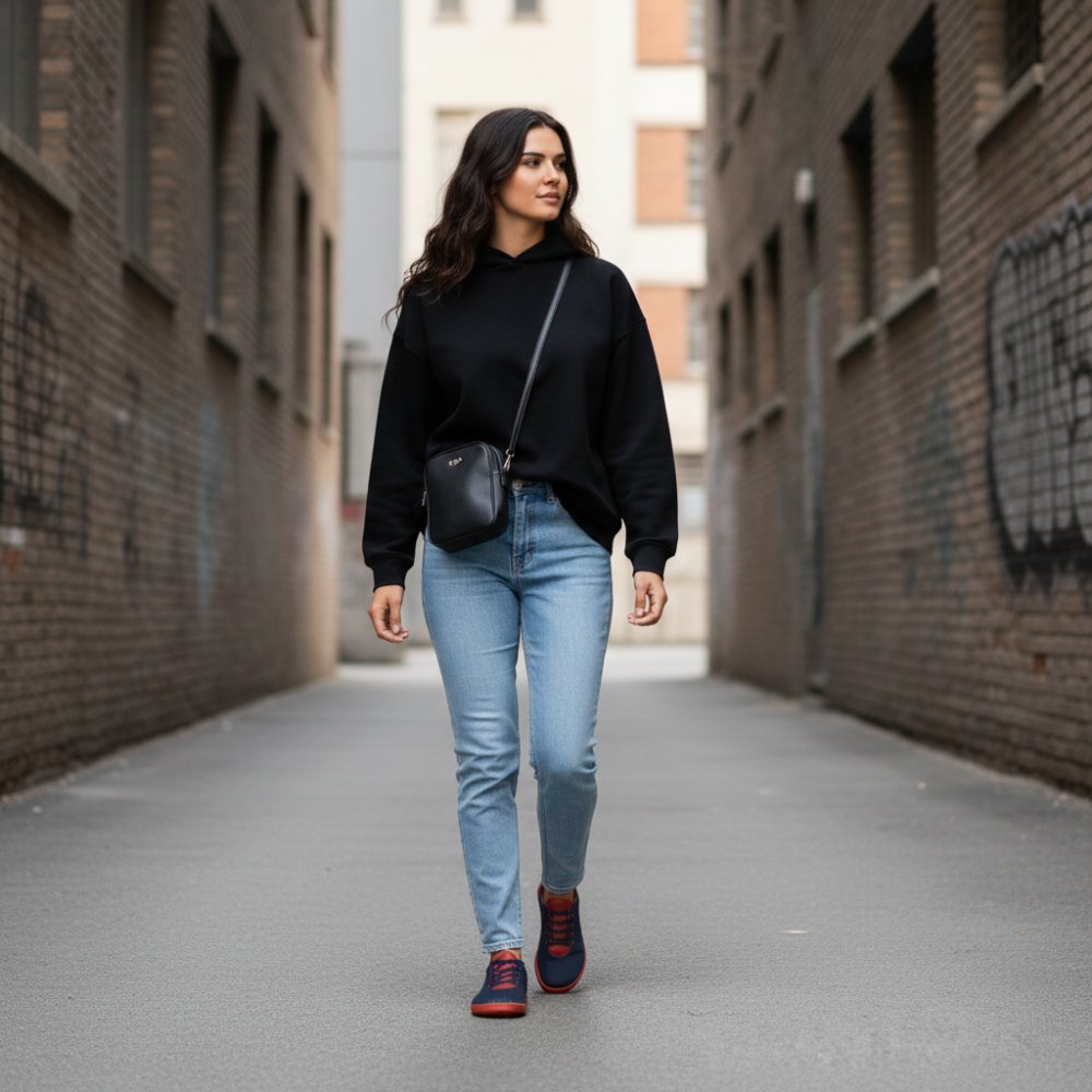 Gumowa podeszwa z zerową piętą, w ten sposób zmniejszając kręgosłup i chroniąc stawy, wspiera naturalną postawę