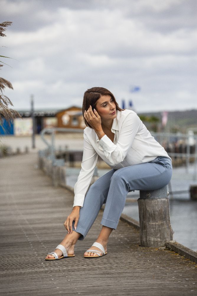 Silver White qate łączą elegancję i beztroskie uczucie chodzenia boso w stylowym sandale. Ich unikalny design z dwoma delikatnymi srebrnymi paskami z przodu i szerszym białym paskiem nad napięciem nie tylko oferuje oko, ale także gwarantuje bezpieczne i wygodne dopasowanie. Szlachetny charyzmat czas pasuje do różnych okazji.