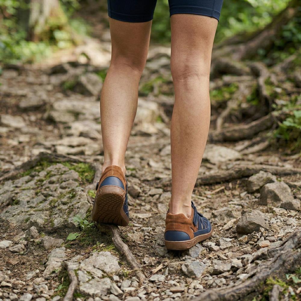 Gumowa podeszwa zewnętrzna z zerową piętą, w ten sposób zmniejszając kręgosłup i chroniąc stawy, wspiera naturalną postawę
