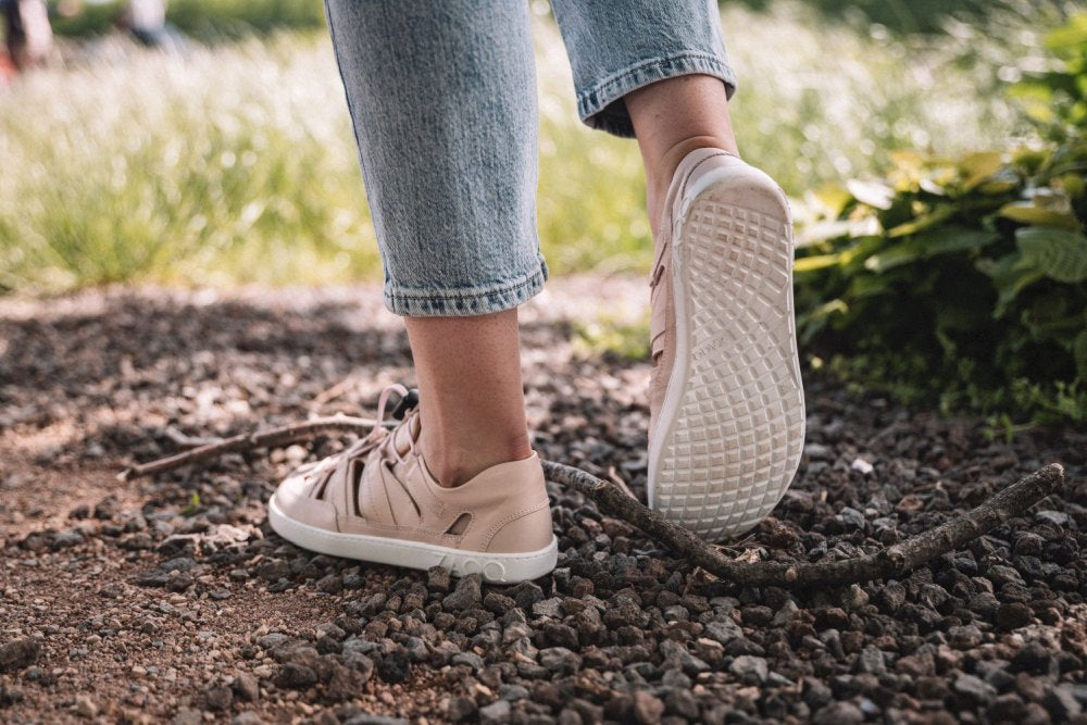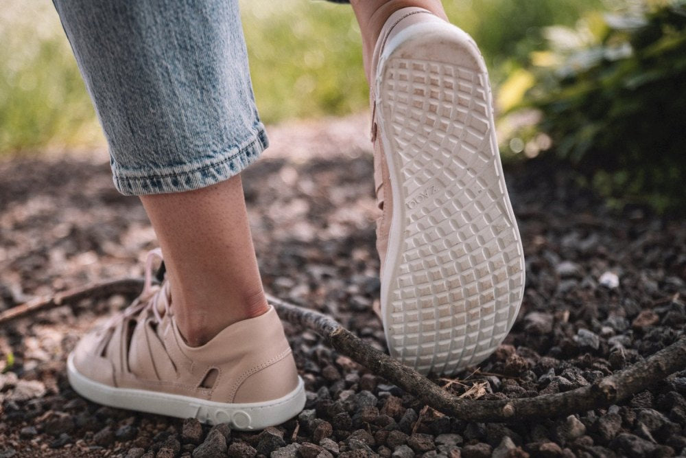 Gumowa podeszwa zewnętrzna z zerową piętą, w ten sposób zmniejszając kręgosłup i chroniąc stawy, wspiera naturalną postawę