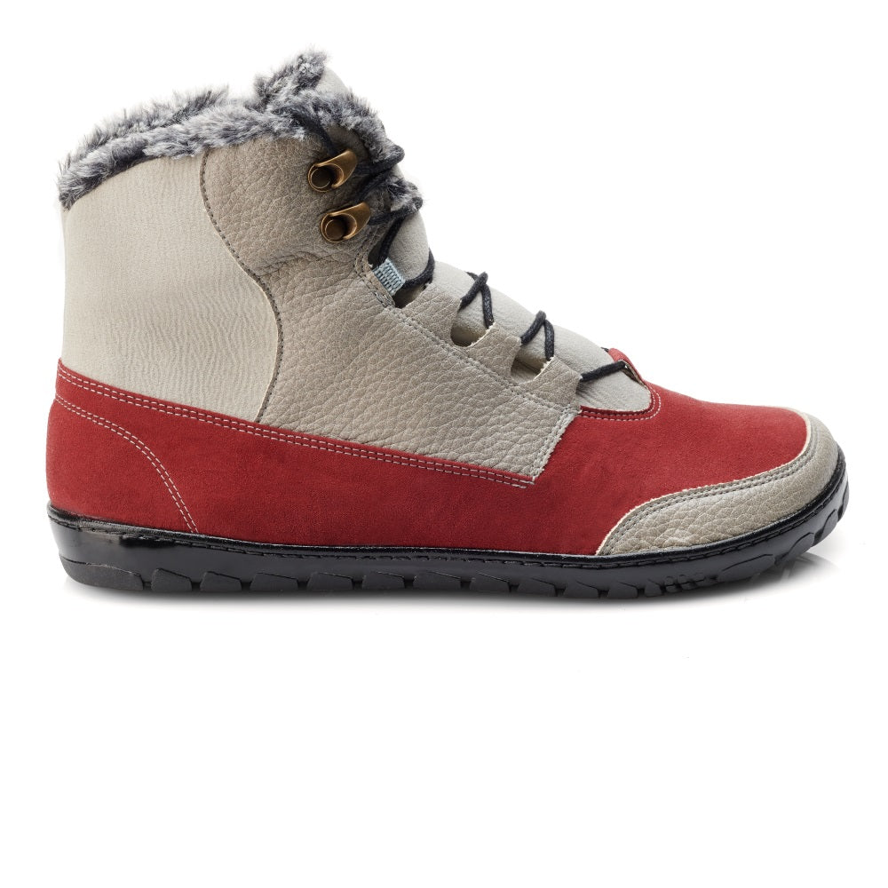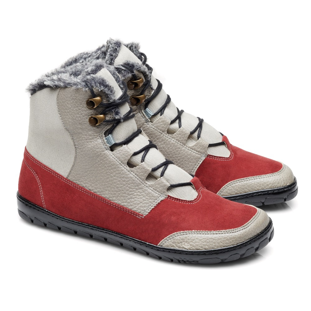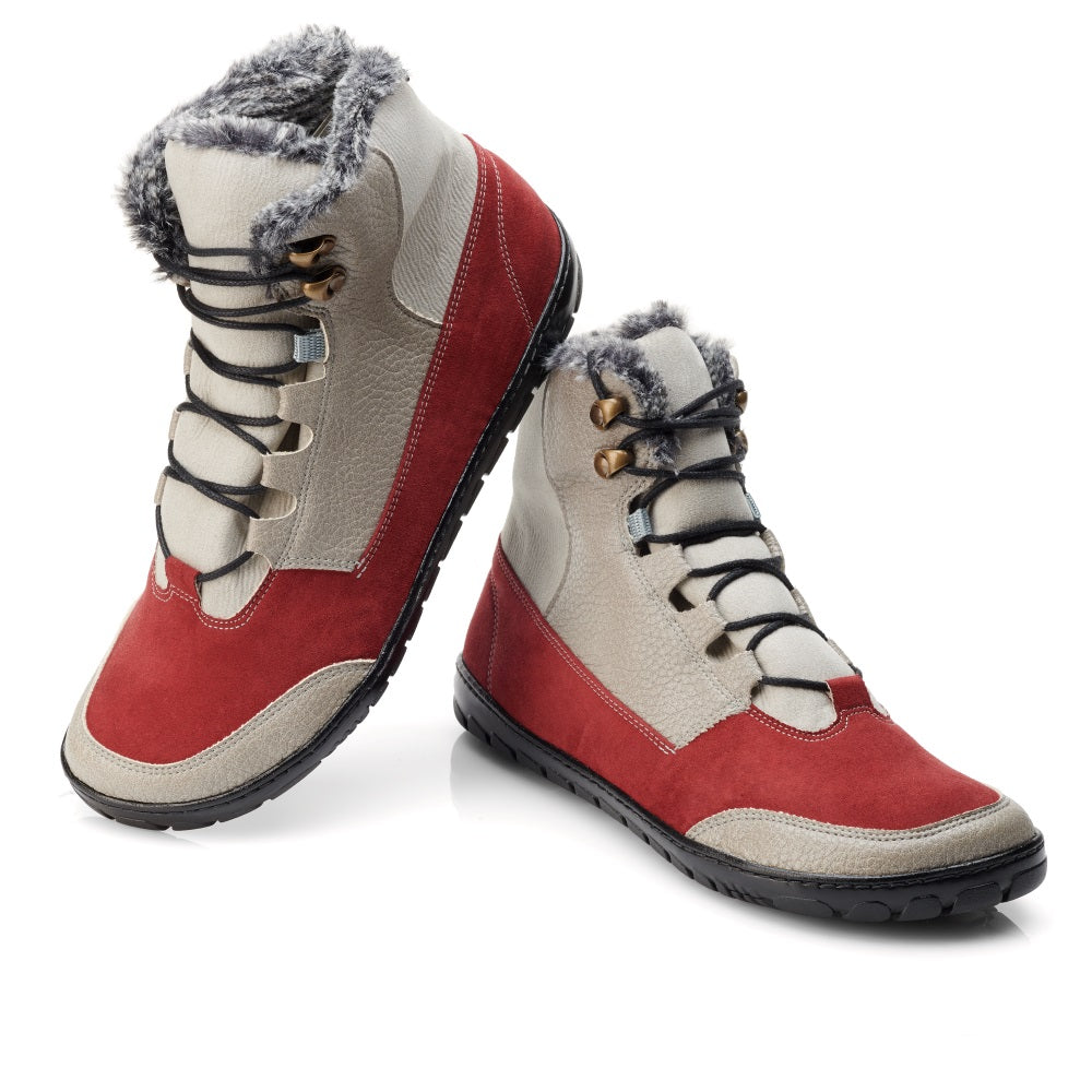 Z zewnątrz buty boso są prezentowane nowoczesnym i świeżym designem. Kontrast z Bordeaux Red i Beige po prostu cudownie pasuje do tej łodzi zewnętrznej. Na szczycie szybu pozwalamy, aby ciepła wewnętrzna podszewka nieco wyglądać, aby dać boso typowy zimowy wygląd. Jedno jest pewne, że twoje stopy pozostają przyjemnie ciepłe, nawet w chłodne dni.