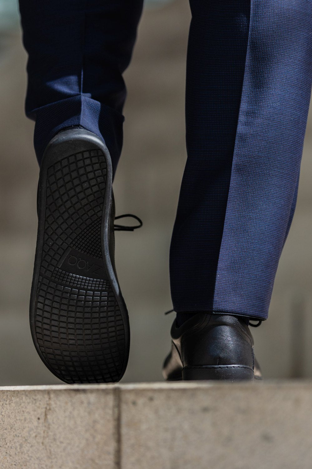 Gumowa podeszwa z zerową piętą, w ten sposób zmniejszając kręgosłup i chroniąc stawy, wspiera naturalną postawę