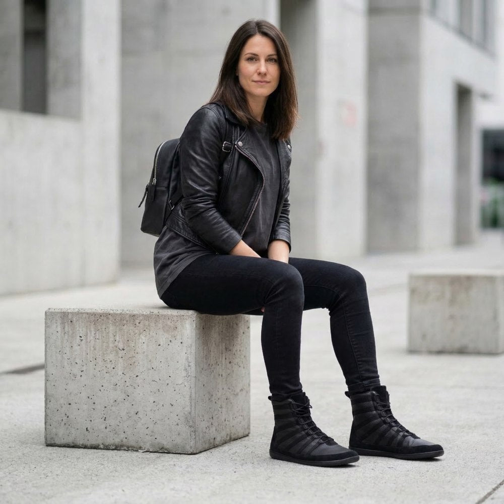 Różne materiały o jednolitej koncepcji kolorów nadają temu bosowi butowi ultra -nowoczesną charyzmę. Na wrażliwych obszarach wokół podeszwy i na pięcie uszyliśmy solidny zamsz. W połączeniu z perforowaną skórą nappa i szyte paski, nasza wysoka czarna czarna wygląda ekscytująca bez zwracania uwagi. Wysoce elastyczna podeszwa boso daje najwyższy komfort - bieganie w naszym Sparq High Black to przyjemność dla twoich stóp.
