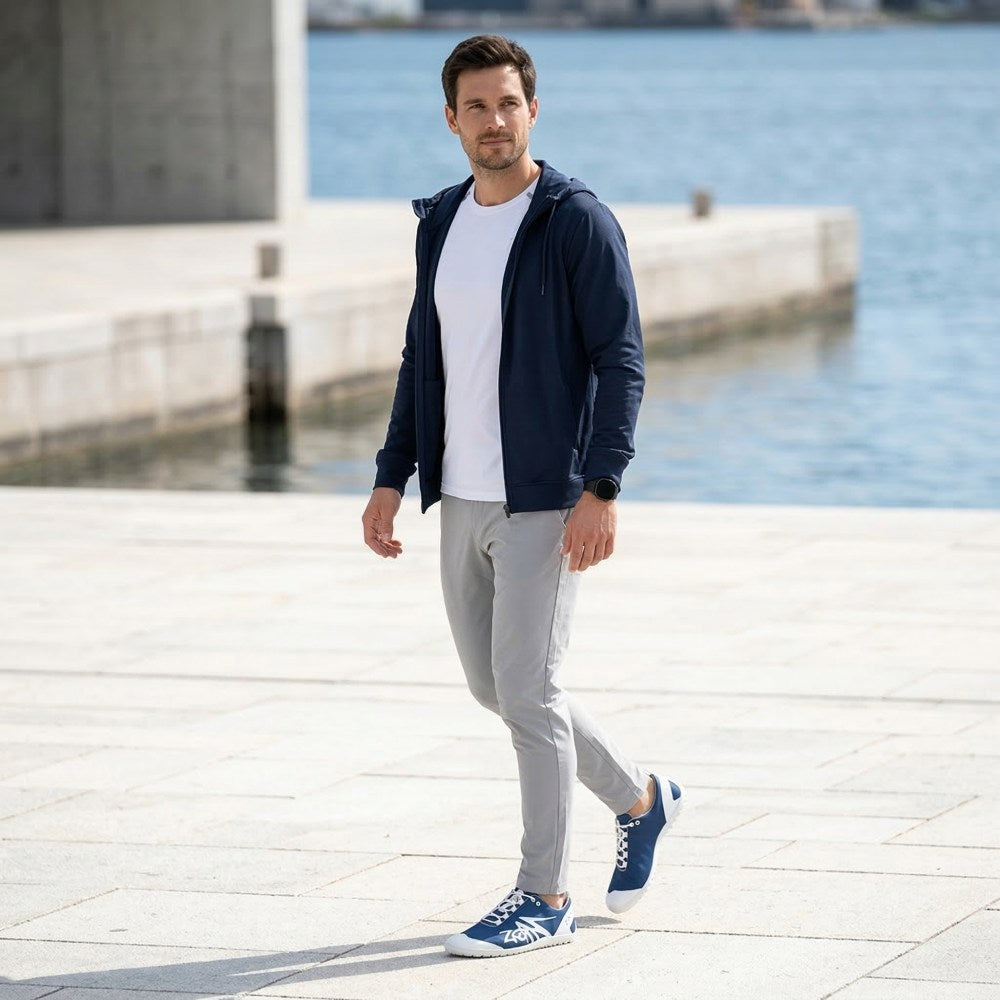 Ten elegancki tenisowiec został wyprodukowany z recyklingu włókien, a zatem chroni środowisko, ponieważ nie wykorzystano żadnych nowych zasobów. Więc nie musi stać w drugim rzędzie pod względem jakości lub wygody. Nasz SQIM Blue jest szczególnie oddychający, trwały i ultra -komfortowy.