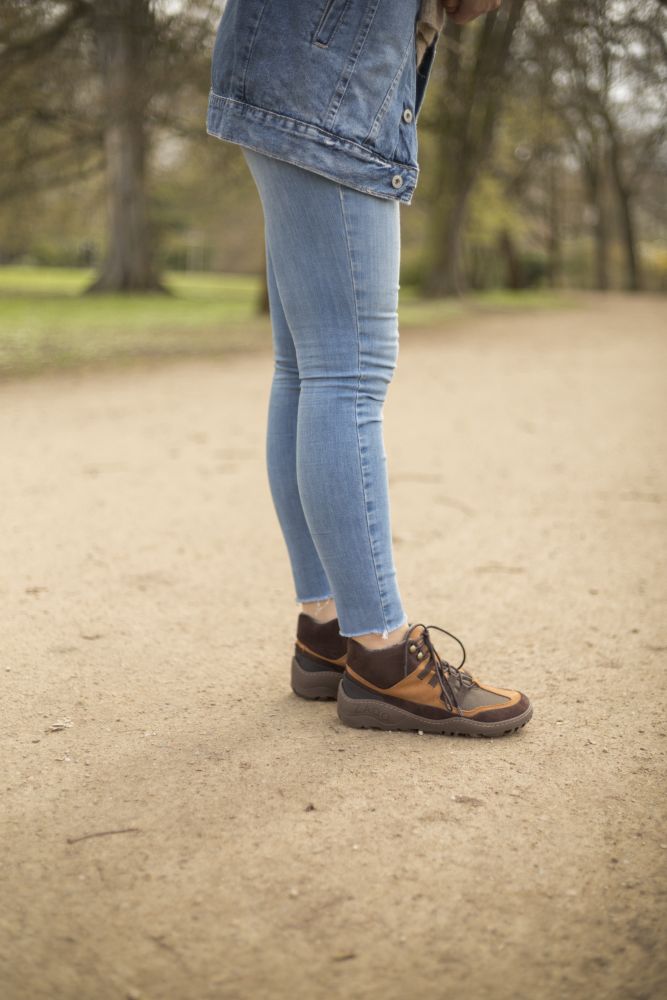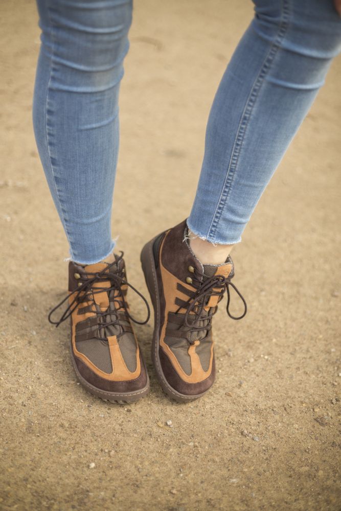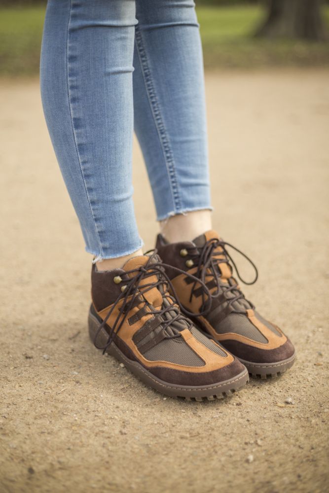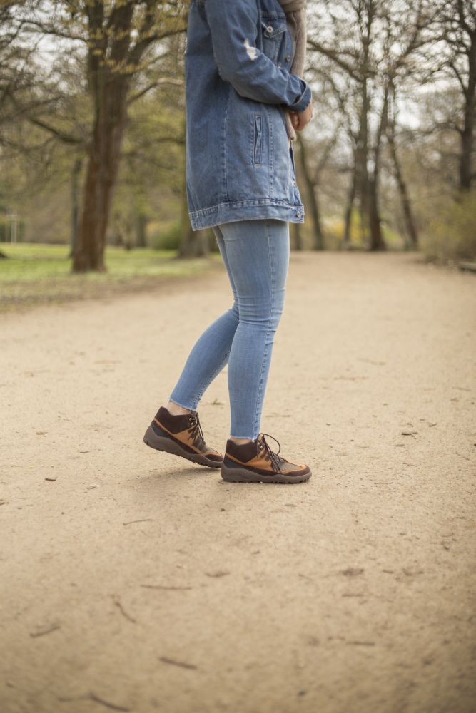 Terra gumowa podeszwa z zerową piętą, w ten sposób łagodząc kręgosłup i chroniąc stawy, wspiera naturalną postawę
