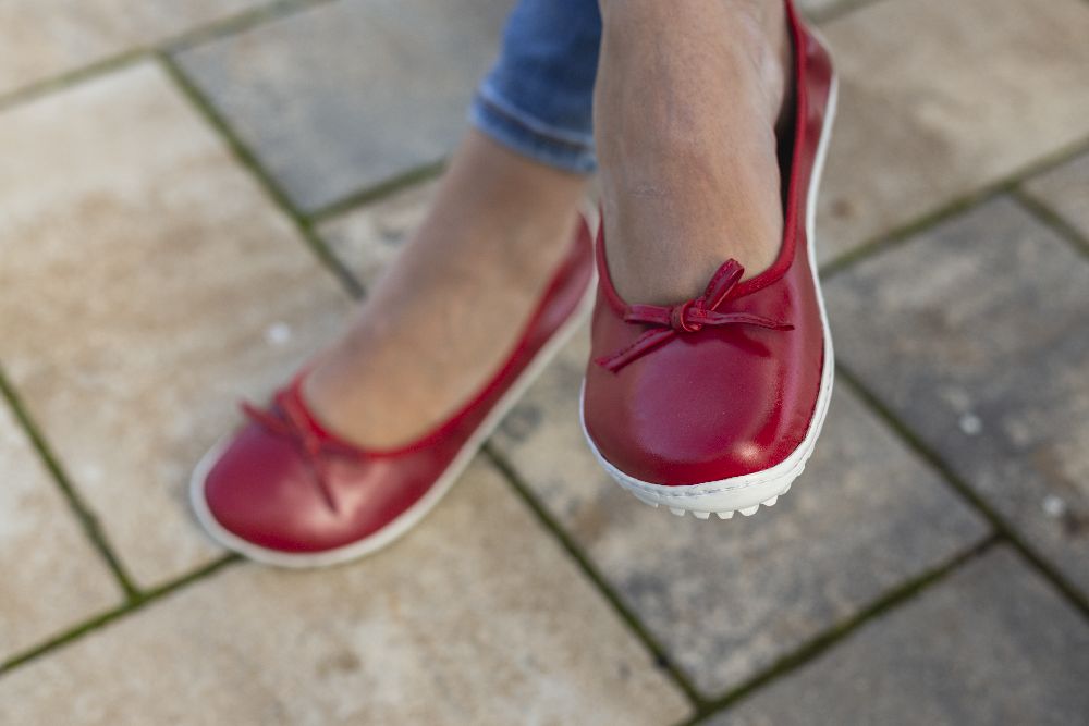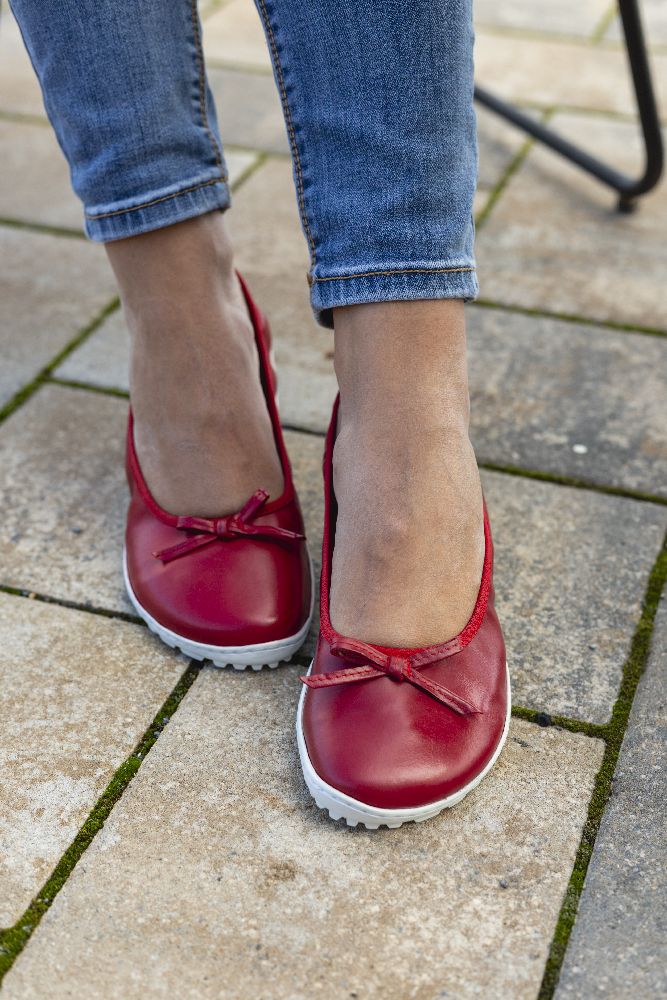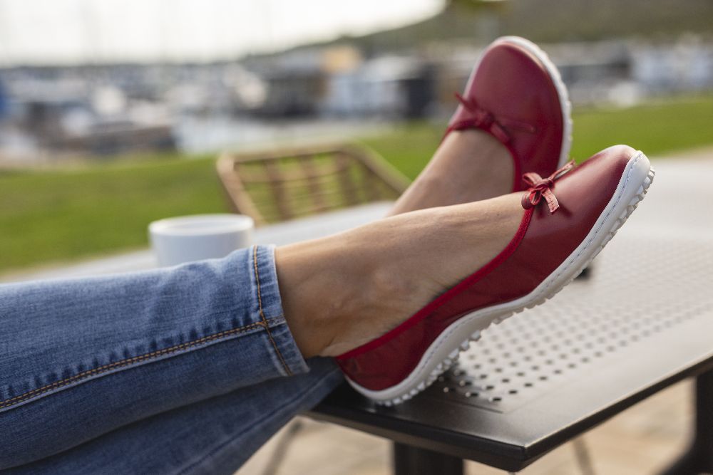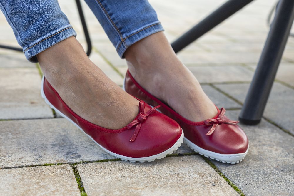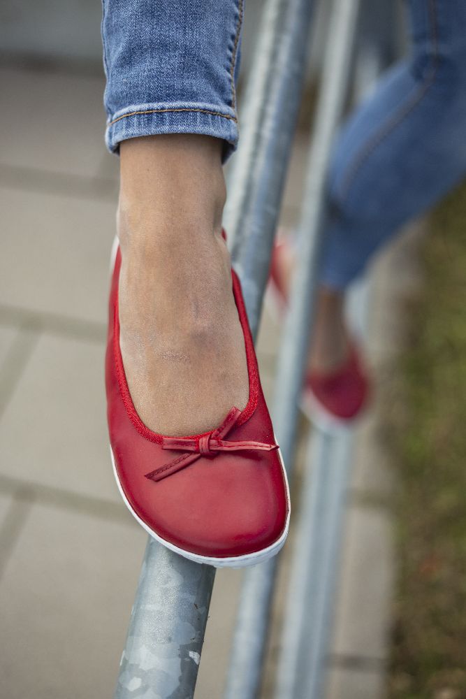 Drobna, ciemnoczerwona gładka skóra i subtelna pętla nadają baletce delikatny, kobiecy wygląd. Przez złamaną sneaker podeszwa wygląda sportowo, świeży i nowoczesny. Podeszwa boso zapewnia również dobry przyczepność, a jednocześnie jest tak cienka i elastyczna, że twoje stopy odczuwają podłogę na każdym kroku.