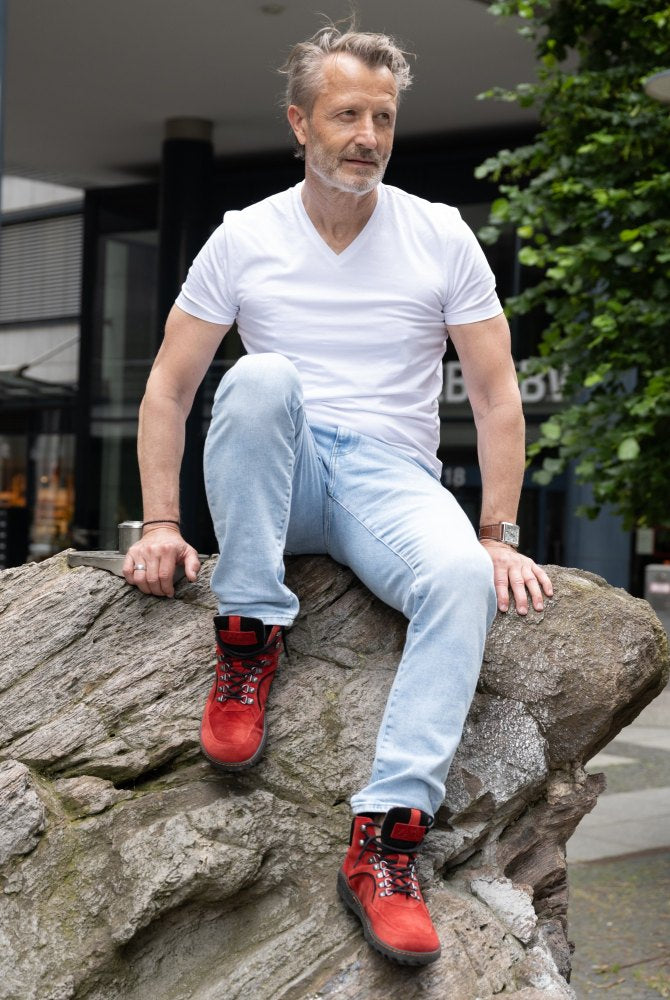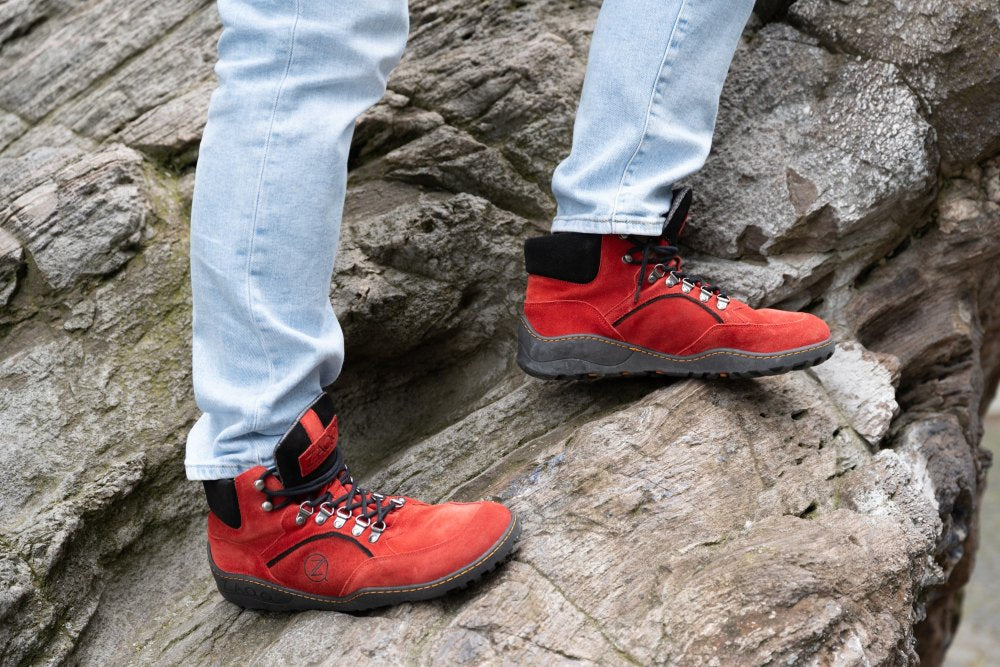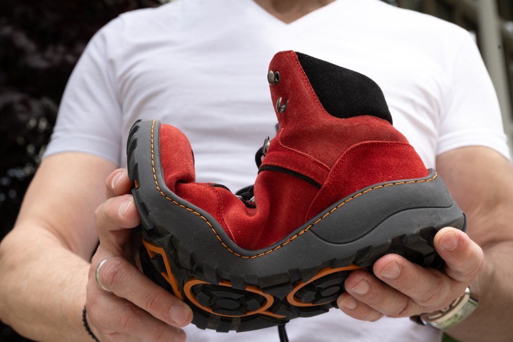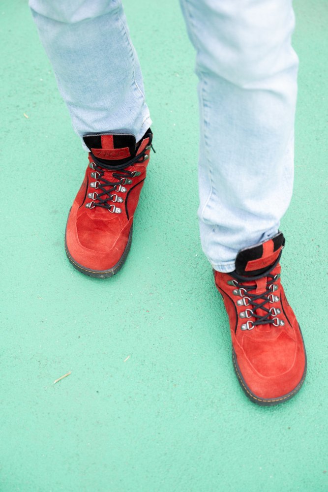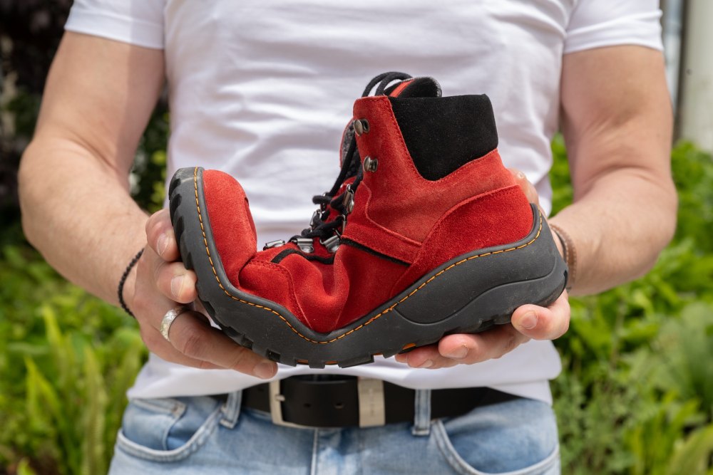 Cholera jest wykonana z miękkiego zamszu w ciemnopomarańczowym odcieniu. Solidne z zewnątrz, cudownie przytulnie i elastyczne od wewnątrz, musi być wygodne buty na zewnątrz.