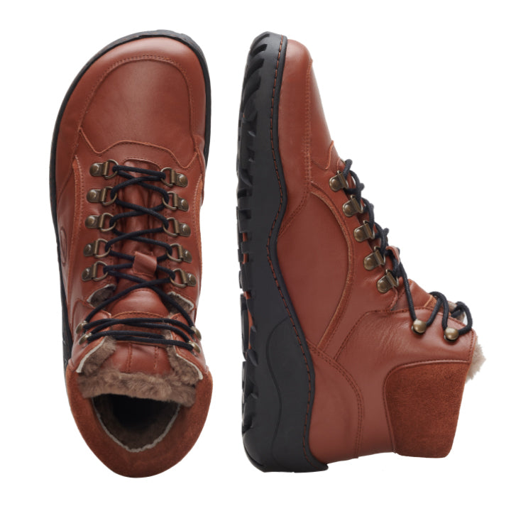 Zimowy wodoodporność Treq Cognac to idealny zimowy buty na świeżym powietrzu dla kobiet, które nie chcą się robić bez komfortu bosego buta nawet w mroźnych temperaturach.
